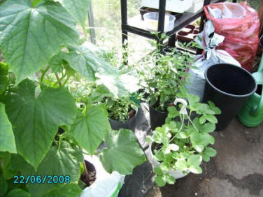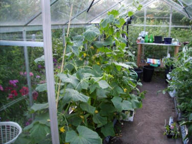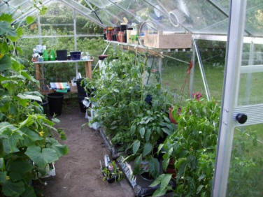 Vi har også et drivhus og det er vi meget glade for. Det er rart at man kan have sin egen produktion af agurker, chilipeber, tomater og peber.