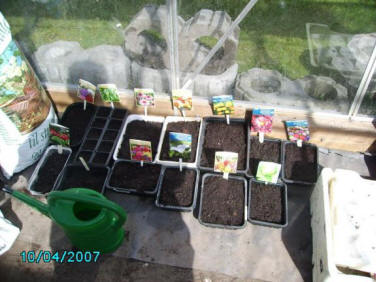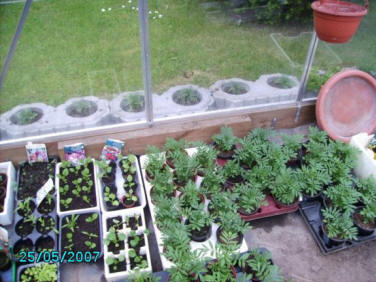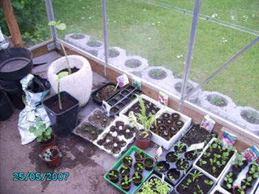 Drivhuset Buske og træer Krukker Blomster i haven Urtehaven